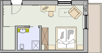 STANZA PER 2 PERSONE DI 21M²