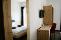 La stanza è così composta: letto matrimoniale, poltrona letto, bagno con servizi e doccia, disbrigo, balcone con vista a sud/ovest verso la Paganella e il paese.